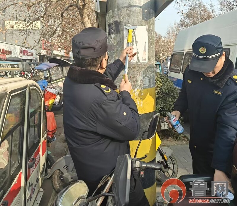 鲁网1月26日讯 佳节将至,为给广大市民营造一个整洁优美、规范有序、文明和谐的节日环境,近日,枣庄市薛城区综合行政执法大队重拳出击,全面对各类张贴、喷涂等违规行为开展整治活动,以靓丽的城市“颜值”喜迎新春的到来。