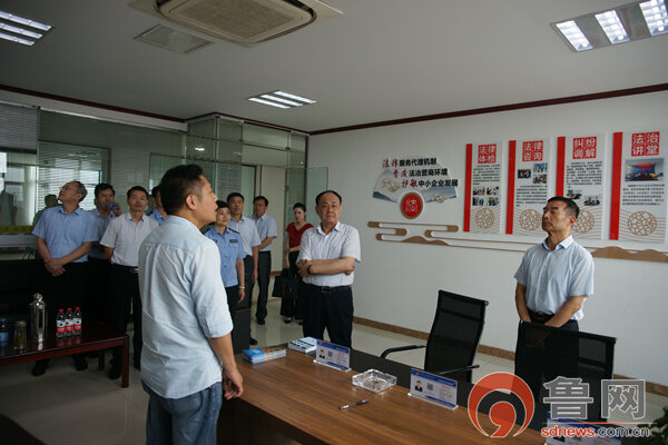 调研组一行先后深入到市中区公安分局、区市场监管局、盛北商贸法治文化城,调研了公安机关“块”警务建设情况、依法打击假冒伪劣商品工作开展情况、区总工会友工创业园、区检察院服务中小企业联络室、区司法局服务中小企业发展办公室,调研组分别听取了有关情况介绍,查阅了档案资料,实地察看了各相关部门服务民营企业工作现场,并观看了专题汇报片,最后进行了热情洋溢的座谈交流。