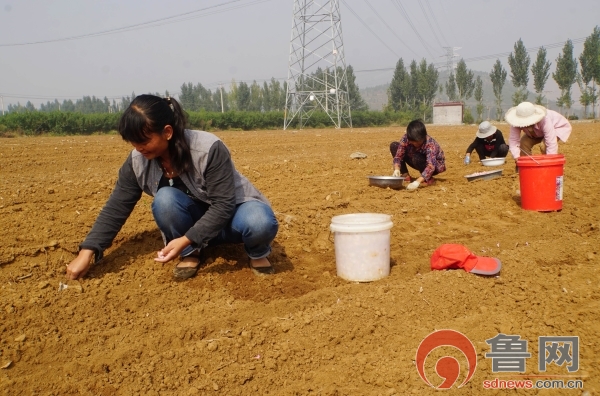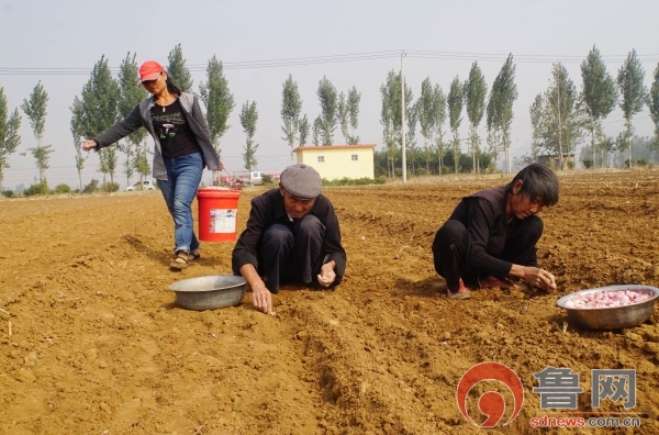 10月9日,西集镇东河岔村村民甘信雨正在播种大蒜。 (通讯员 赵连友)
