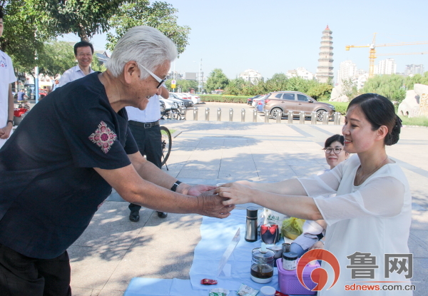 滕州市中医院于9月8日上午,参加了滕州市卫计局组织的在龙泉广场开展的大型公共场所义诊活动,正式拉开2018年“服务百姓健康行动”大型义诊活动周帷幕。在现场开展义诊服务,为现场群众测量血压、测血糖,进行常见病、多发病诊断及健康知识宣传,解答群众疑难问题,专家们耐心的聆听,详尽的专业解答,真诚的服务态度,为前来参加活动的群众送去了健康服务和人文关怀。当日适逢世界急救日,该院急诊科医务人员现场示范教授大家“心肺复苏”急救知识,老人、孩子们积极参与,围成一圈现场观摩,逐次练习,医务人员则蹲在旁边纠正和提醒,直到动作完全正确为止。该院茶艺爱好志愿者,现场为群众进行了茶艺表演,并为他们泡制了中医药特色的养生茶。义诊共接受群众咨询200余人次,免费为群众义诊、测血压及血糖80多人,派发科普知识读本200多份,健康宣传折页100多份。
