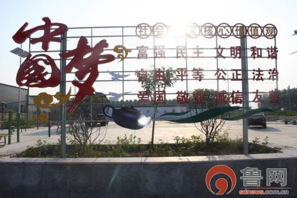 鲁网枣庄7月29日讯 蓝天白云下,金黄的吉祥彩云托举着“中国梦”三个鲜红大字,“富强、民主、文明、和谐”、“人人节约、家家有余、明礼是福……”格外醒目,在东郭镇美丽乡村——唐林新村社会主义核心价值观主题公园里,一幅幅出行云流水书法的主题宣传画颇具文化气息。