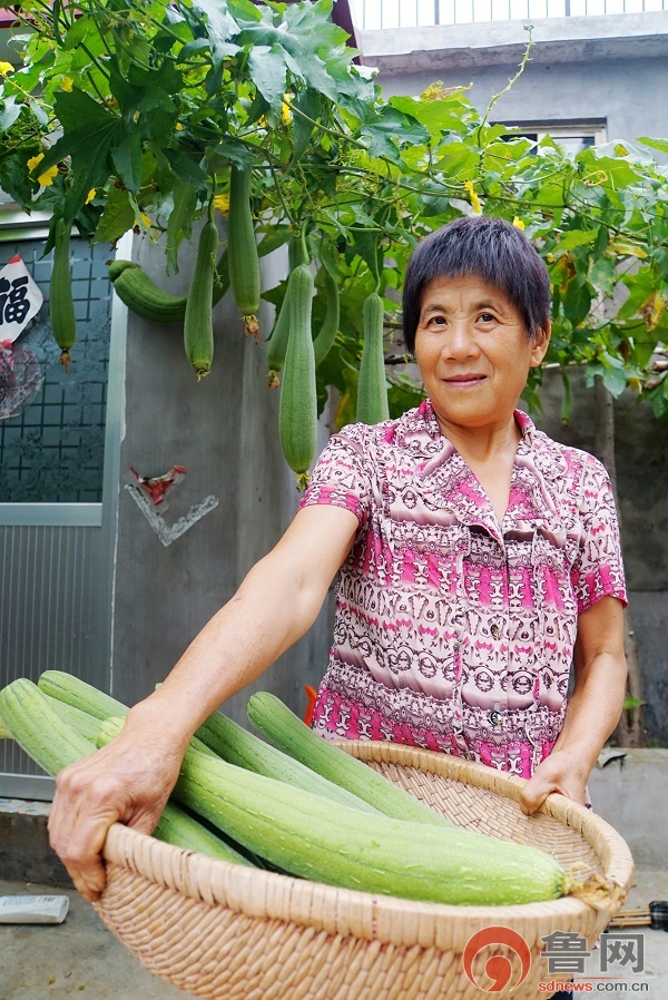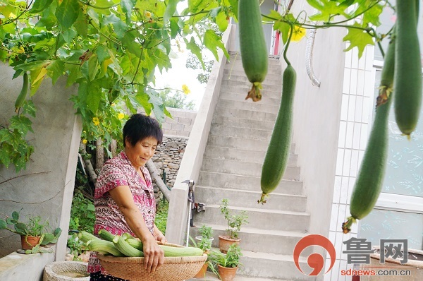 鲁网枣庄9月7日讯 9月5日,山东省枣庄市山亭区双山村一农民在自家生态庭院里采摘丝瓜。山亭区把生态庭院建设作为乡村振兴战略的一项重要内容,积极打造“村在树中,树在村中,人在绿中”的生态宜居美丽乡村新景象。同时,庭院葡萄、丝瓜、樱桃等,不仅美化了人居环境,而且还带来可观的经济效益。(通讯员 赵连友)