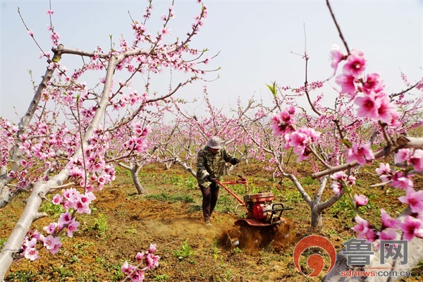 鲁网枣庄4月3日讯 4月3日,全国果菜茶有机肥替代化肥试点项目(有机废弃物堆沤还田模式示范点)——山东省枣庄市山亭区金农果蔬种植专业合作社100亩桃园桃花盛开,社员们正忙着给桃树上施微生物菌剂+牛粪+作物秸秆堆沤有机肥料,并浅耕松土除草,依靠科学管理,促有机桃提质增产增收。(赵连友)