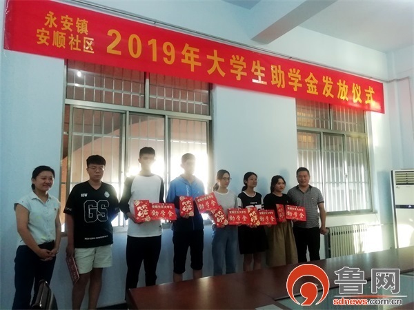 鲁网8月30日讯(记者 张刚) 为鼓舞和奖励永安镇安顺社区学生们金榜题名,8月29日,枣庄市中区永安镇安顺社区2019年大学生助学金发放仪式在会议室举行。来自市中区、永安镇有关领导、安顺社区负责人和取得功成名就的学生们以及家长们共同参加了奖学金发放仪式活动。