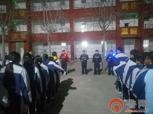 近日,滕州市大坞中学联合大坞派出所成功举行住宿生夜间消防疏散演练。