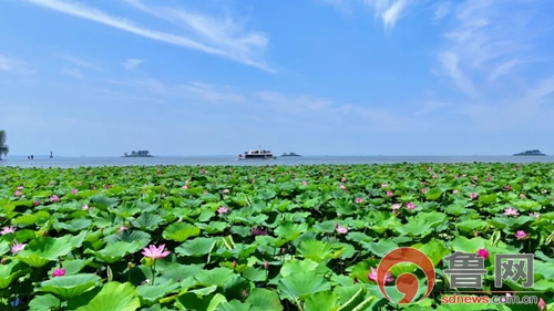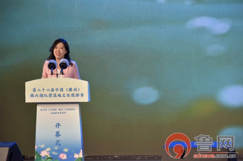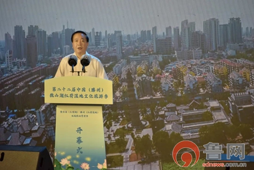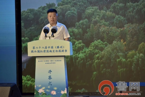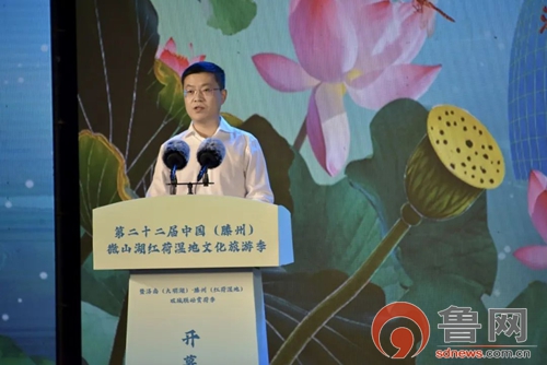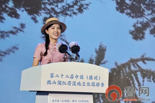 鲁网7月28日讯(记者 陈庆武)满池菡萏香盈袖,善城美景迎宾朋。7月26日,第二十二届中国(滕州)微山湖红荷湿地文化旅游季暨济南(大明湖)·滕州(红荷湿地)双城联动赏荷季在红荷湿地景区盛大开幕。