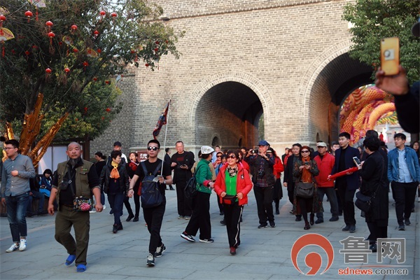 跋山涉水而来的远客们不仅体验了当年乾隆巡游天下第一庄台儿庄时的盛景,还品尝了运河鲤鱼、枣庄辣子鸡、菜煎饼、黄花牛肉面等鲁南特色美食。
