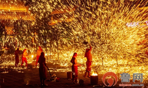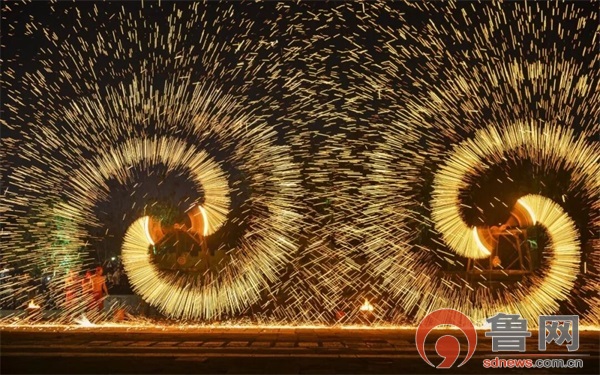 台儿庄古城丨千年绝技“火龙钢花”灿若星辰,点亮夜空