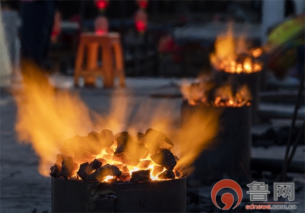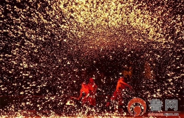 “火龙钢花”有着千余年的历史,是首批国家级非物质文化遗产项目。演出前一个多小时演职人员开始烧制铁水,温度达到1500摄氏度,不能过高,也不能过低,烧好的铁水3-5分钟之内必须打出,否则就打不出来绚丽的钢花。