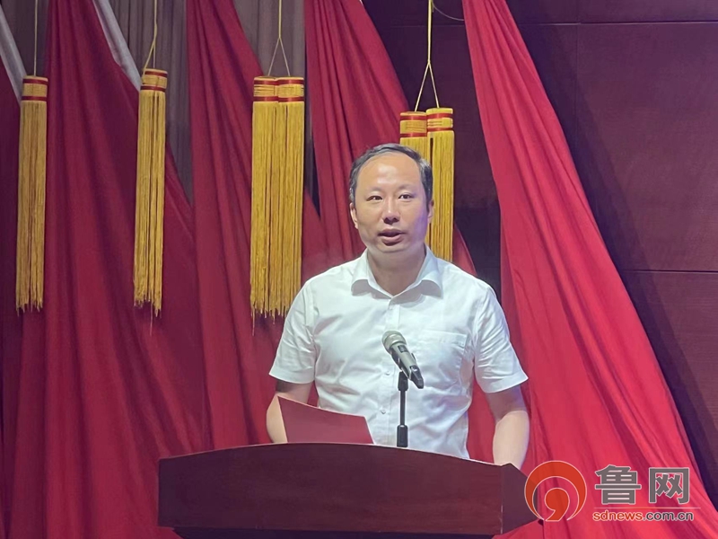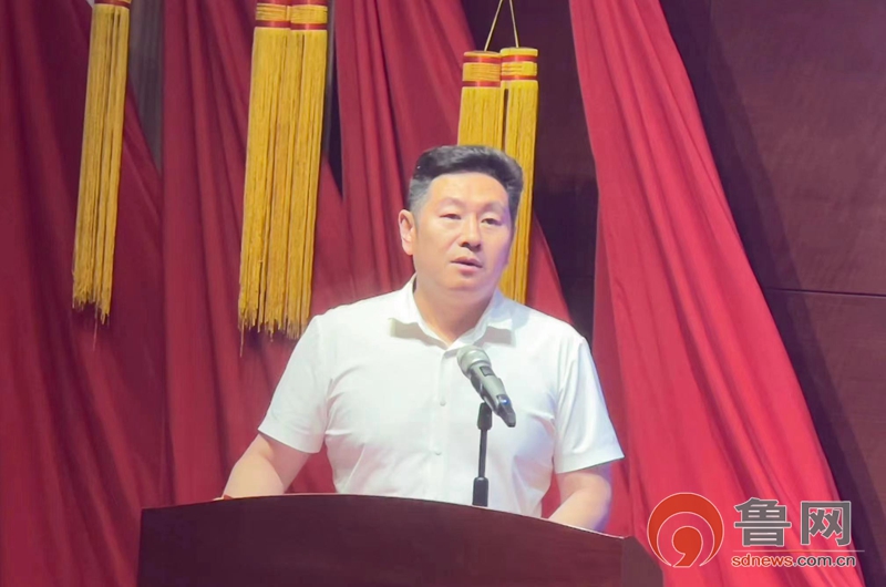 最后,薛城区人大常委会主任张红卫向济南兴洲足球俱乐部授旗。