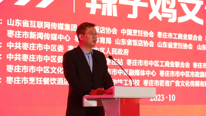 区委副书记、区长韩耀辉在致辞中向出席本次活动的领导和来宾表示欢迎和感谢。他说,枣庄在此举办第七届辣子鸡美食文化节,以美食、特色文化为载体,开展国家金牌厨师炒鸡品鉴、百人炒鸡表演等系列活动,把枣庄美食、枣庄风情、枣庄特色全方位展示给大家,共同品味枣庄饮食文化之精髓,尽情体验市中文化之底蕴。市中区将以举办辣子鸡美食文化节为契机,进一步发掘本土源远流长的美食文化,打响城市美食品牌,激活城市烟火气,扩大枣庄“辣子鸡之乡”知名度和美誉度,让枣庄辣子鸡走向全国,展现更地道的枣庄味道。