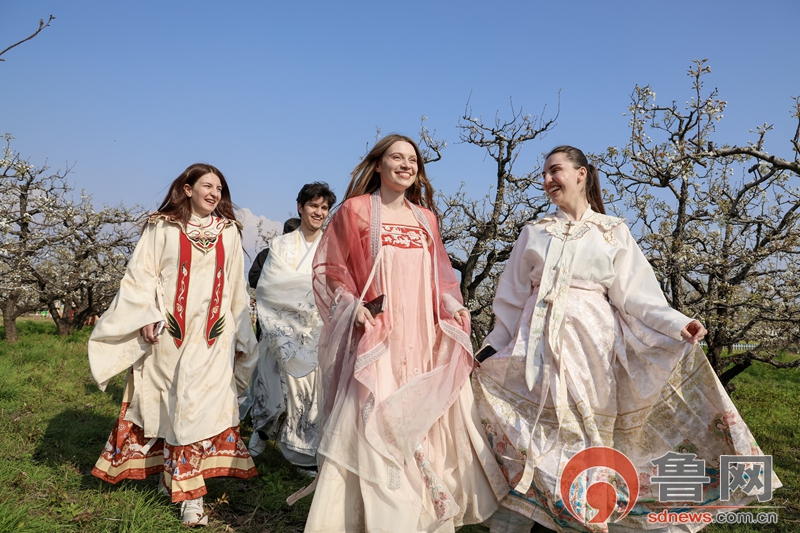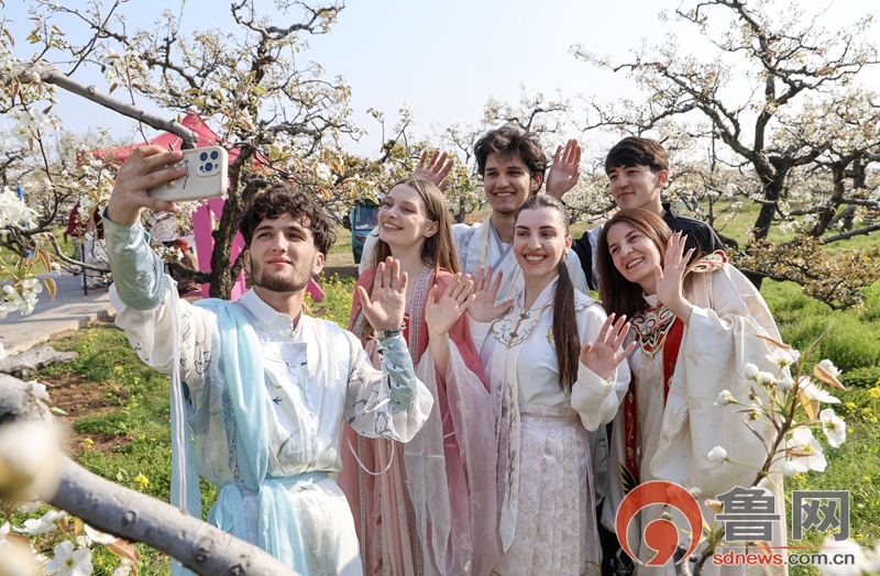 鲁网4月2日讯(记者 陈庆武)清明节前,在山东省滕州市柴胡店镇刘村梨园,来自枣庄科技职业学院的20余名塔吉克斯坦和土耳其的外国留学生,通过穿汉服、赏梨花、习民俗的过程,深度体验中国传统文化。