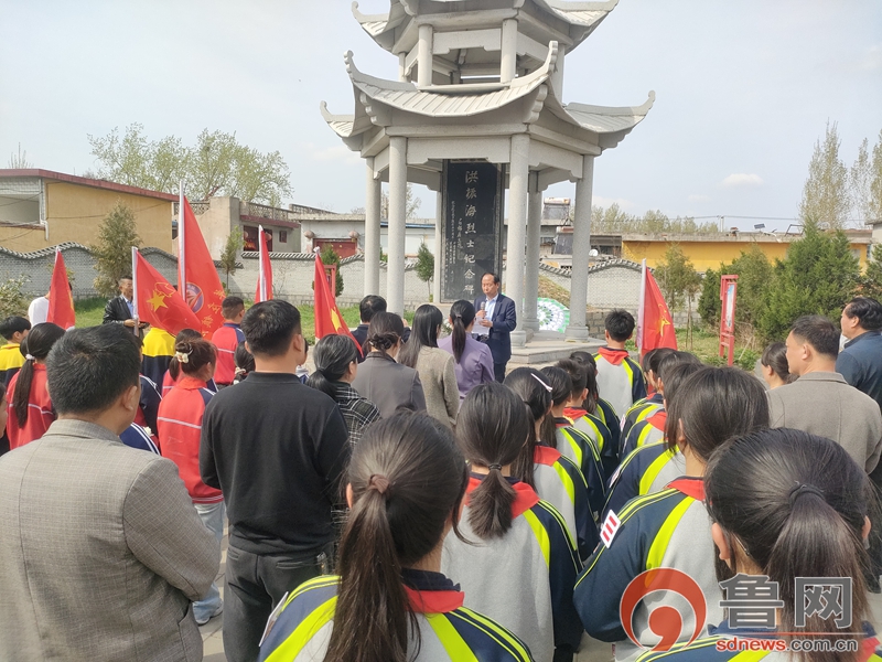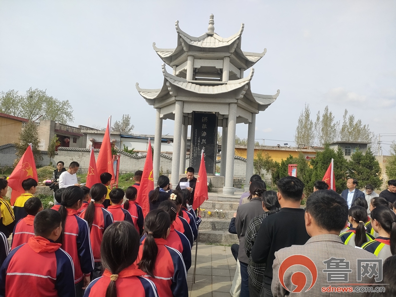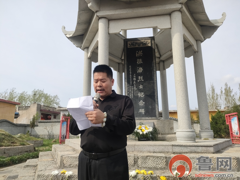 鲁网4月3日讯(记者 杜伟 宋树斌)春风轻拂,鲜花摇曳,亦诉尽人间哀思。松柏凝翠,静立无言,却将一腔赤诚,默默寄往那镌刻着英雄风骨的丰碑上。4月3日下午,由鲁网枣庄频道、滕州市杨庄镇总工会,枣庄市铁道游击队酒业有限公司,枣庄市千花坊花店联合主办的“缅怀革命先烈,赓续红色血脉”祭英烈活动,在滕州市羊庄镇大北塘村铁道游击队第一任大队长洪振海烈士墓前举行,来自社会各界和附近中小学生共100余人齐聚现场,共同缅怀洪振海烈士的英雄事迹,传承和弘扬铁道游击队的红色精神。
