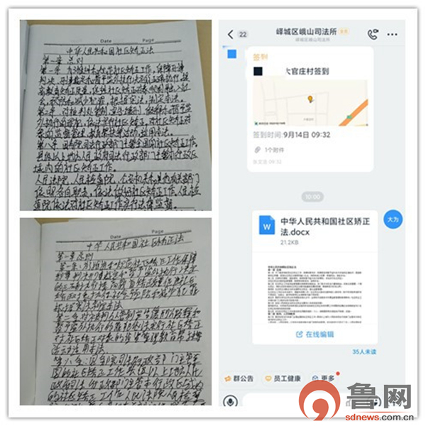 会后,司法所长要求所有社区矫正对象认真学习,做好学习笔记,服从管理,服务社会,按时在钉钉群签到,严格遵守社区矫正各项规定。同时将《社区矫正法》的全文发送到微信群和钉钉群中,方便社区矫正对象平时学习。
