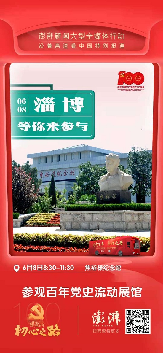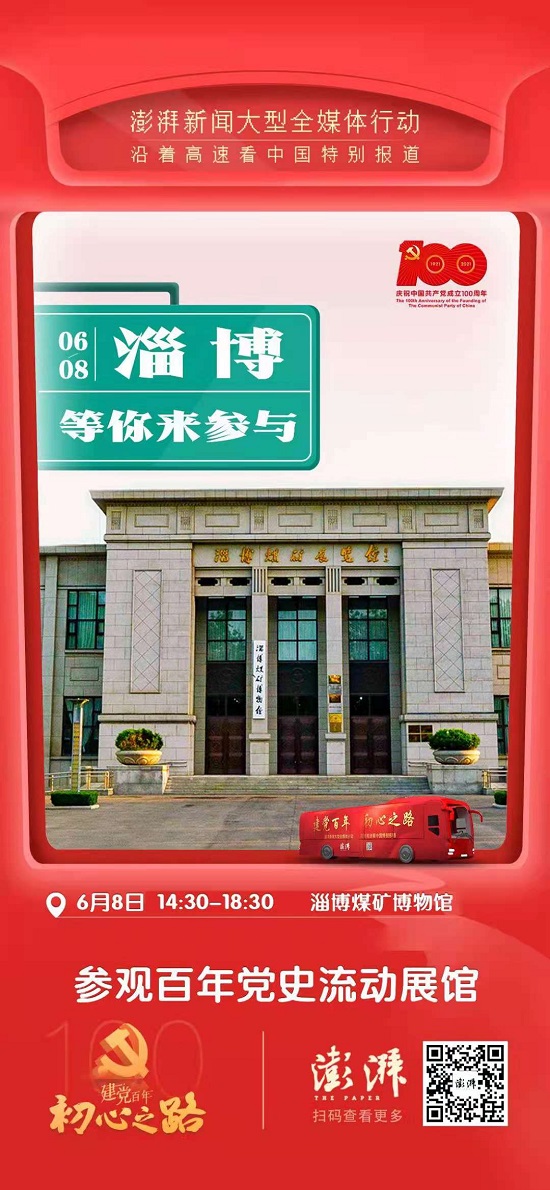 6月8日,澎湃新闻“建党百年 初心之路”全国巡展红色大巴将走进淄博,感受历史悠久的工人力量,体味这座老工业之城中独特的红色基因。