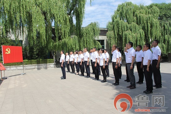 6月21日,淄博市博山公路事业服务中心组织党员集体赴焦裕禄纪念馆接受革命历史教育和党性党风教育,全体党员在焦裕禄同志塑像面前,面向党旗重温入党誓词。