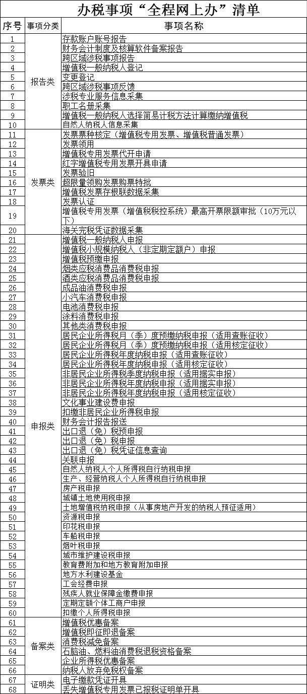 附:办税事项“最多跑一次”清单(共六大类291个事项)