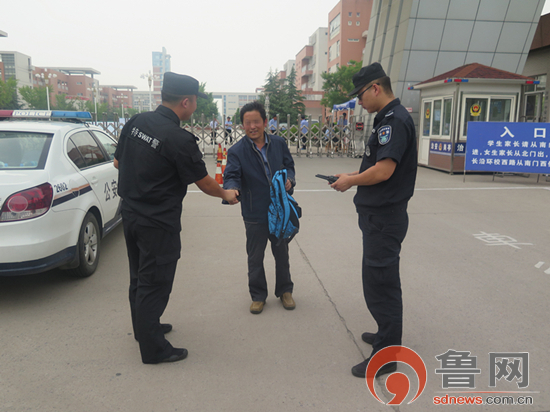 6月8日下午,沂源县公安局武装巡逻民警接到报警称:在沂源一中考点参加高考的两名学生的准考证在儿童乐园丢失。接到报警后,民警迅速赶到报警地点,经了解,报警的小盛、小张是本届高考学生,上午参加完考试后到儿童乐园游玩,因一时贪玩将一个装有准考证、身份证、手机、现金等物品的蓝色背包丢失。民警了解情况后,为了不耽误学生考试,出警民警立即兵分两路行动,一组民警立即将两名学生送到考点并耐心安抚其情绪;另一组民警在事发地点附近帮助寻找。细心民警经过查看,发现附近监控摄像头,民警通过调取视频监控发现捡拾背包的是两个骑摩托车的男子。民警经过进一步调查确定了其中一摩托车车主的身份信息。经过联系了解车主就在附近某工地干活,民警迅速找到车主,并找到了装有两名考生准考证、身份证件和手机的背包。民警迅速将上述物品送到考点交到了考生家长手里,使考生顺利参加了考试。