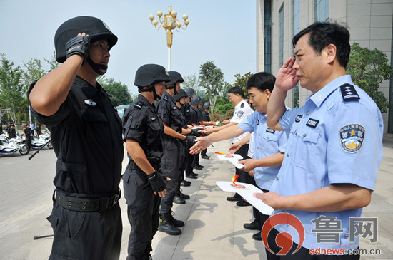 鲁网淄博6月30日讯(记者 齐征 通讯员 孙巍)6月30日,市公安局举行巡逻车辆配发仪式。市公安局党委副书记、副局长于洪德,局领导张宇海、张正祥、李济生、李栋贤等出席仪式并向民警代表发放摩托车钥匙。仪式结束后,56辆警用摩托车奔赴全市巡防一线。