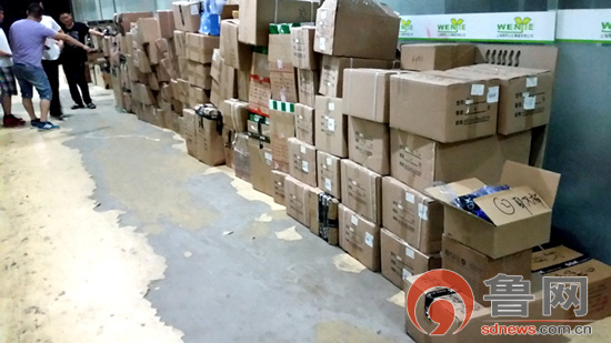 临淄警方依法对涉案公司仓库进行搜查的现场(上海拍摄)
