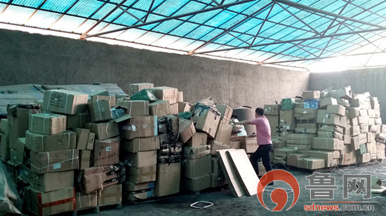 临淄警方查扣的395箱共计1.3万余件假冒汽车配件(临淄拍摄)
