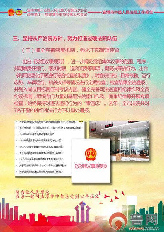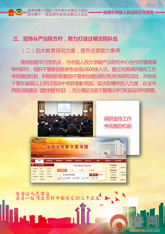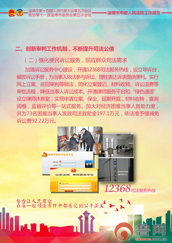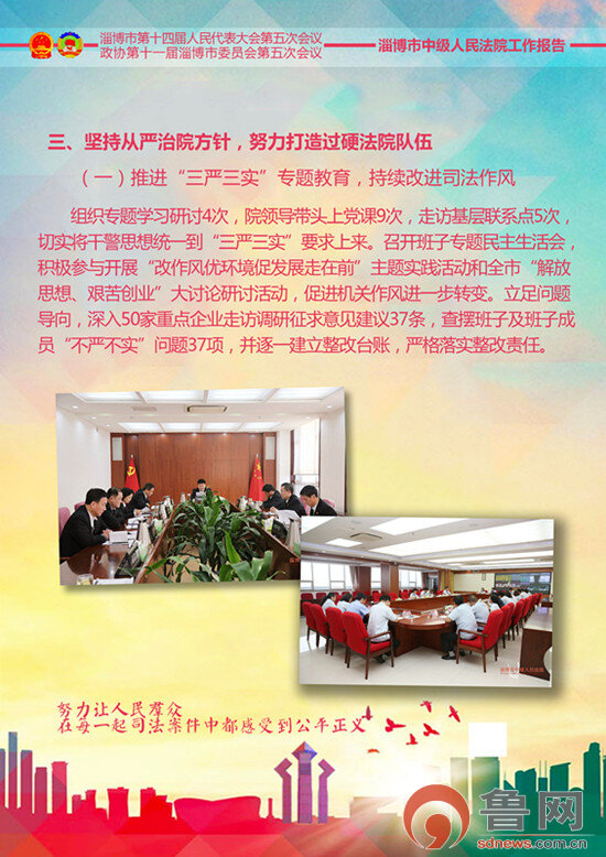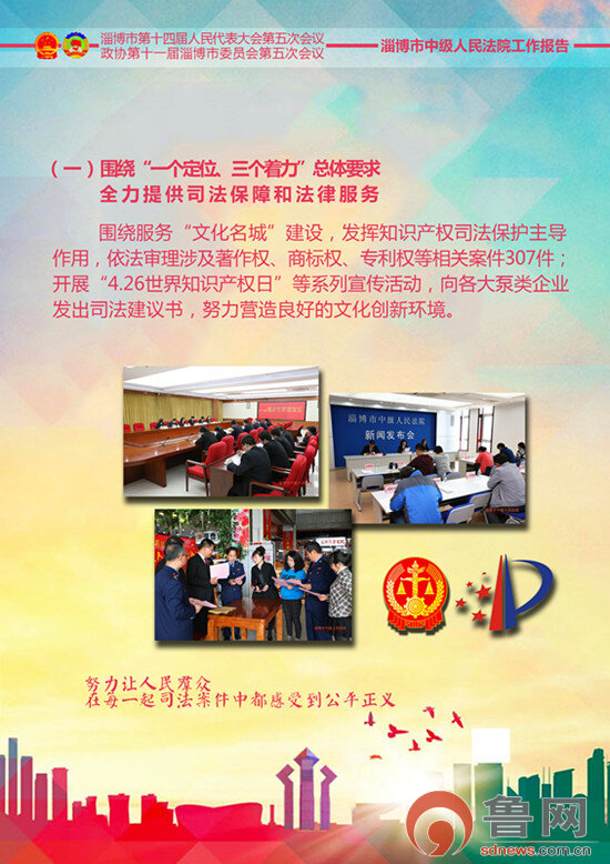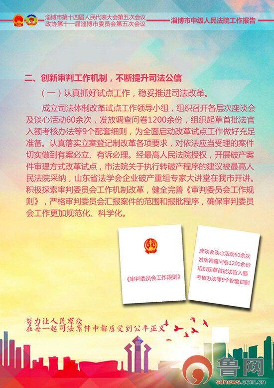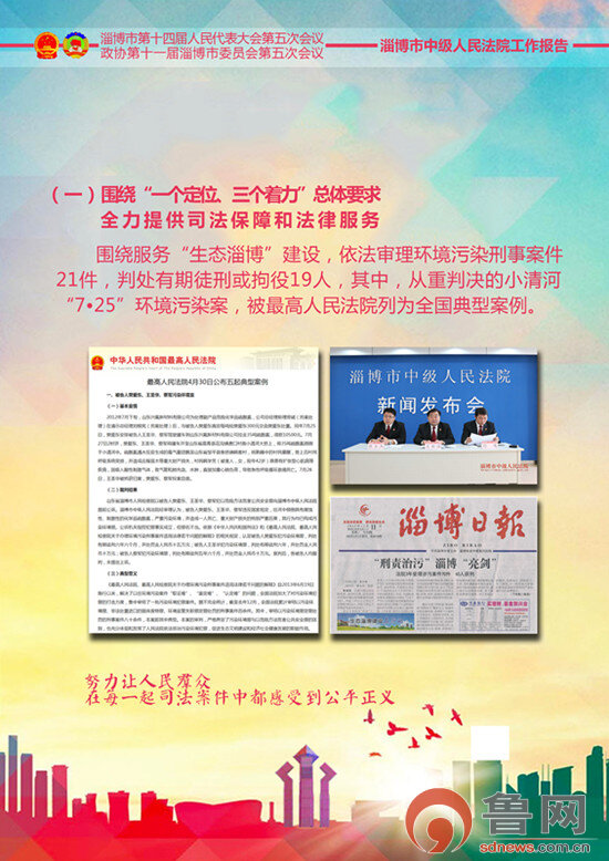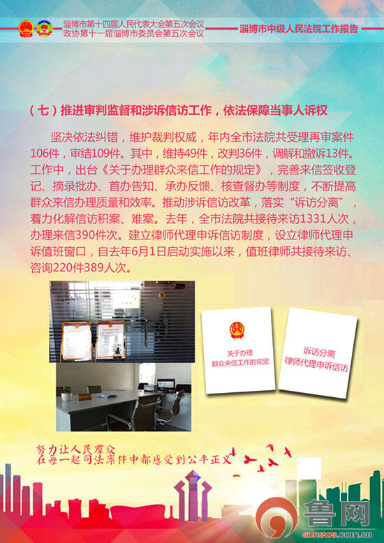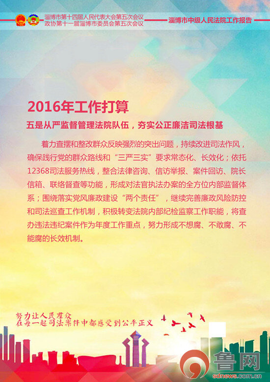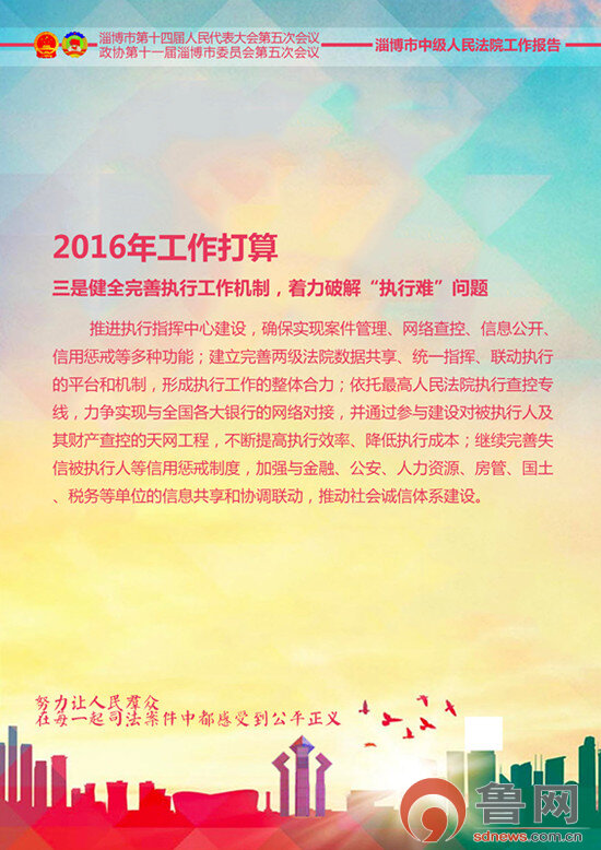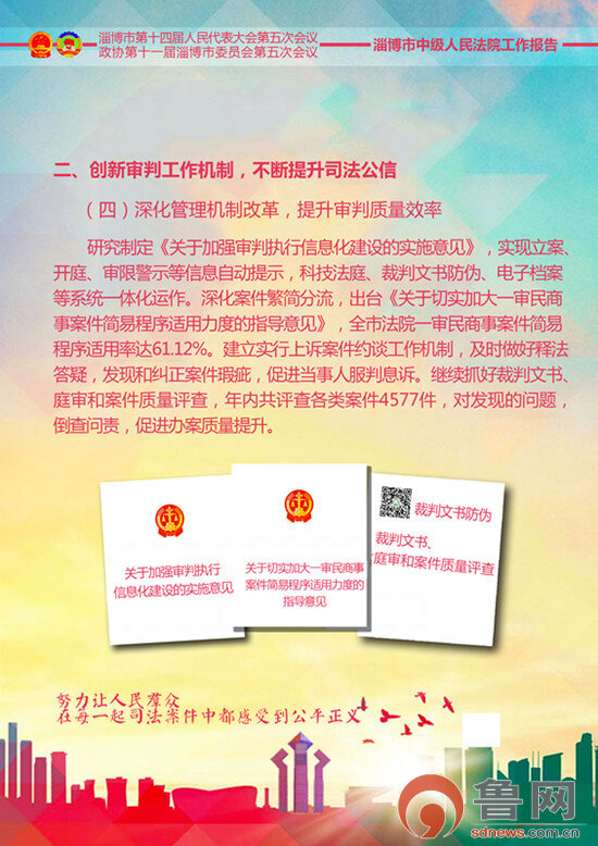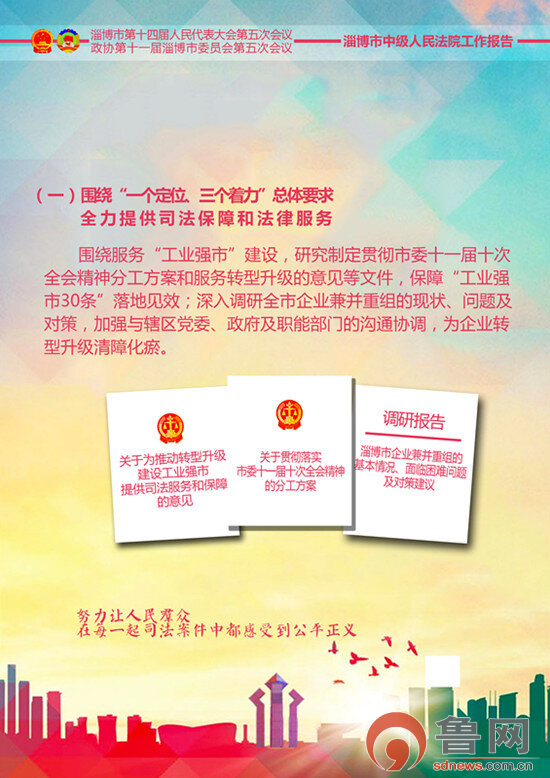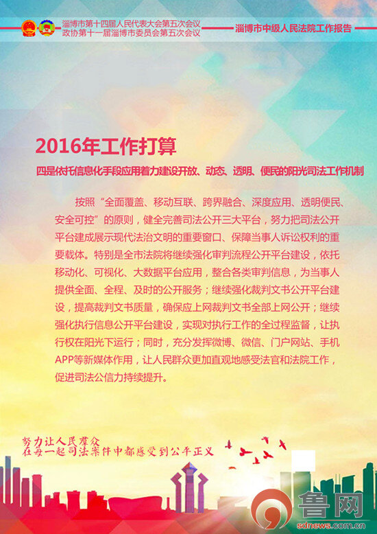 鲁网淄博1月19日讯(记者 崔新孝 马照敏 通讯员 张玉杰 朱峰)1月19日上午,淄博市十四届人大五次会议举行第二次全体会议,淄博市中级人民法院代院长王玮作了淄博市中级人民法院工作报告。2015年,全市法院共受理各类案件61019件,审、执结61503件。