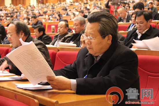 1月17日淄博市第十四届人民代表大会第五次会议在齐盛国际宾馆隆重召开,图为淄博市市长周连华代表淄博市政府向大会作工作报告。