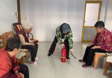 村居工作人员和志愿者早早便将游戏道具准备妥当,一个个充满趣味的游戏项目,静候老年公寓的老人们到来。随后,村居工作人员与老年公寓的老人们一起复习消防知识,并对消防器材进行现场操作讲解。
