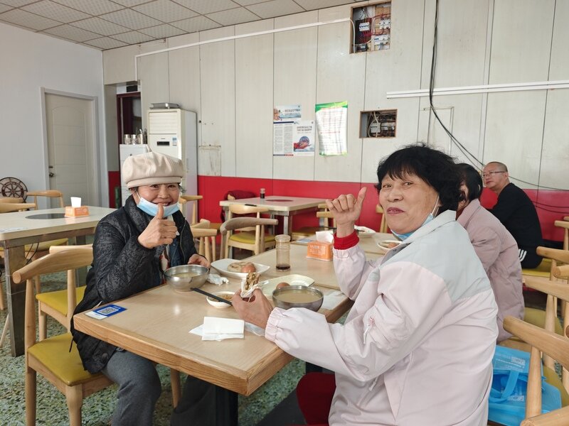 体检结束后,淄博高新区魏家村免费为接受体检的老年人提供爱心早餐。