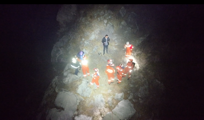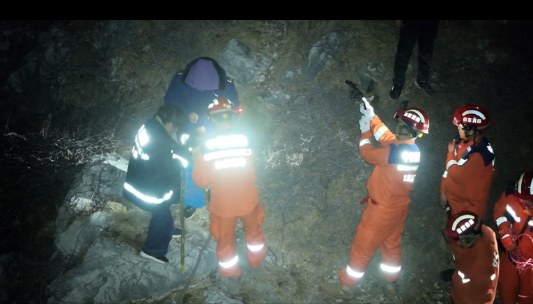 消防救援人员到达山下后,现场指挥员根据被困者描述的位置与属地民警初步制定登山路线和救援计划,调派带有热成像功能的无人机来进行搜救。由于此处山域广阔,被困人员无法说明被困位置,救援人员只能用无人机分区域进行搜索,经过3个小时的搜索,救援人员不断缩小搜寻范围、精准定位目标,在海拔800米的位置发现了被困母子。随后,消防救援人员立刻携带照明设备、安全绳、保暖物资等专业装备,上山进行救援。