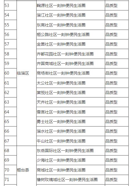 据了解,为落实商务部等13部门办公厅(室)《全面推进城市一刻钟便民生活圈建设三年行动计划(2023-2025)》,淄博市组织开展了2024年度淄博市城市一刻钟便民生活圈申报认定工作。经生活圈自评、各区县综合评价、市级抽查复审,拟认定71个品质型一刻钟便民生活圈、20个提升型一刻钟便民生活圈、9个基础型一刻钟便民生活圈。
