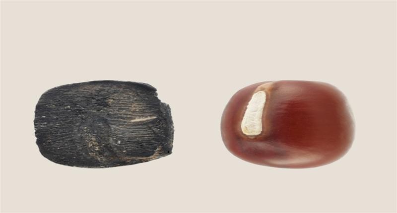 小高遗址出土炭化小豆(左)与现代小豆(右)