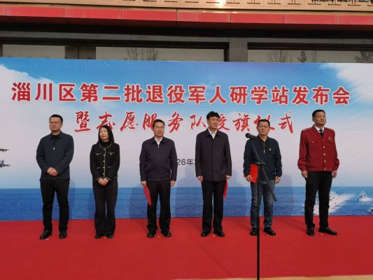 3月31日,淄川区第二批退役军人研学站发布会暨志愿服务队授旗仪式在淄川区党员干部思想政治体检馆举行。