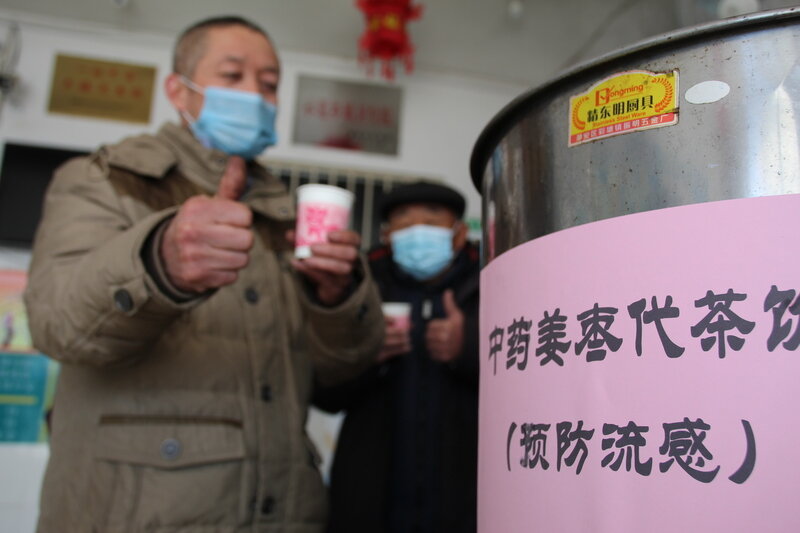 鲁网12月22日讯 近期流感等呼吸道疾病高发,为保障广大人民群众身体健康。淄博市高青县黑里寨中心卫生院熬制中药姜枣代茶饮,免费供就诊群众饮用,提高群众自身免疫力。图为:12月19日,医院志愿者正在为群众发放免费中药姜枣代茶饮。(通讯员 张磊 周松松)
