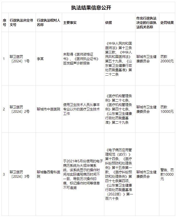 聊城市中医医院、鲁西骨科医院被行政处罚!