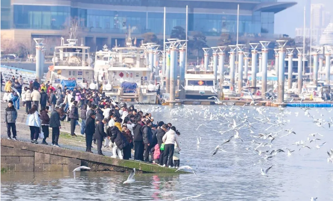 春节前后,日照市万平口大桥附近的海边,成群的红嘴鸥在阳光下盘旋、俯冲,时而落在游客掌心啄食,时而掠过海面激起细浪。这一幕,正成为日照的文旅新名片。