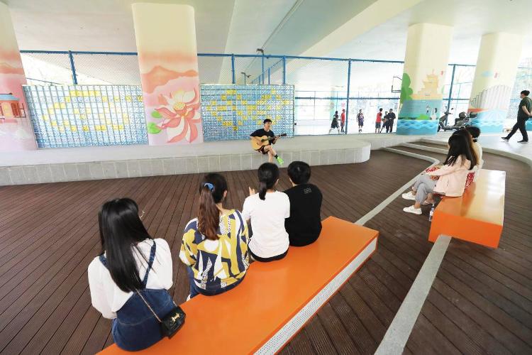在燕山立交低线公园,除了滑板场,还有羽毛球场、乒乓球场、街头篮球场等现代化健身场地,以及城市书屋、演艺广场等便民文化设施,市民在这里畅快健身、静心阅读、欣赏比赛、观看演出……生活多了时尚范,群众多了幸福感。