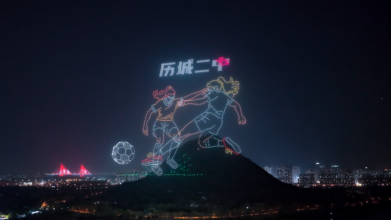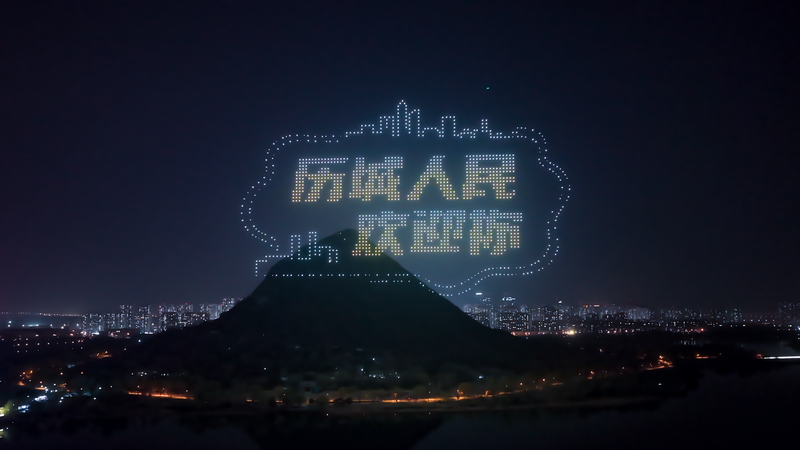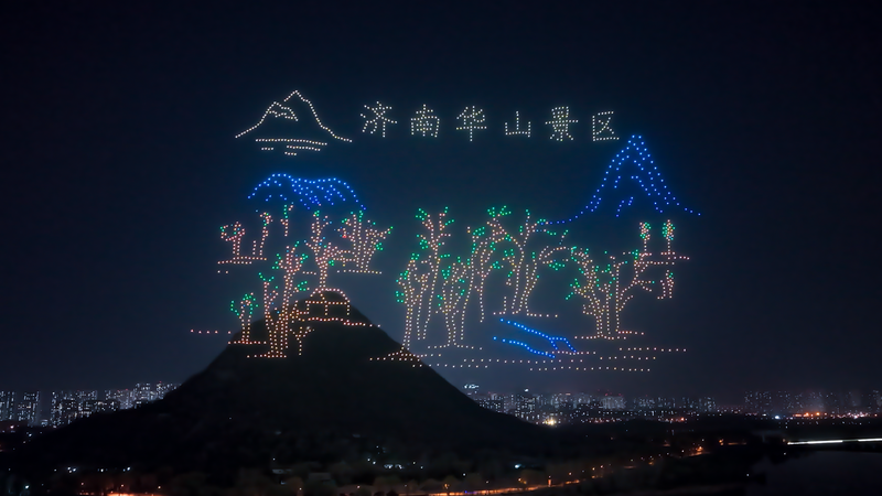 “齐鲁首邑·星耀历城”无人机灯光秀点亮华山湖