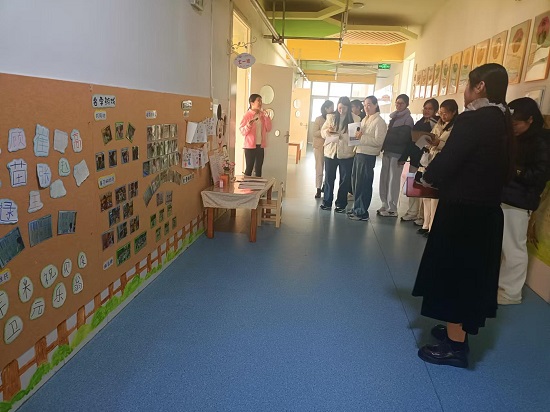 本次评比采取“看现场、听讲解、互点评”的方式进行。教师结合本班幼儿年龄特点和兴趣爱好,全面细致地介绍了班本课程墙、主题墙、自主游戏墙等墙面创设,讲解了区域材料的投放、自然角等环境创设思路和方法,突出班本特色和凸显本土文化氛围,让老师们清晰地了解到每处环创背后蕴含的教育价值和意义。各班级基于儿童视角打造班级文化,大到整体氛围的创设,小到细节上的处理,都充分展现了"以幼儿为本"的教育理念,让环境与幼儿对话,发挥环境作为“第三位教师”作用的思想理念。