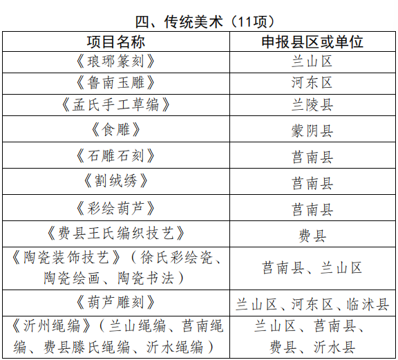 鲁网11月28日讯 近日,临沂市文化和旅游局申报的第七批市级非物质文化遗产代表性项目名录(共计120项)和市级非物质文化遗产代表性项目名录扩展项目名录(共14项),经市政府同意,予以公布。
