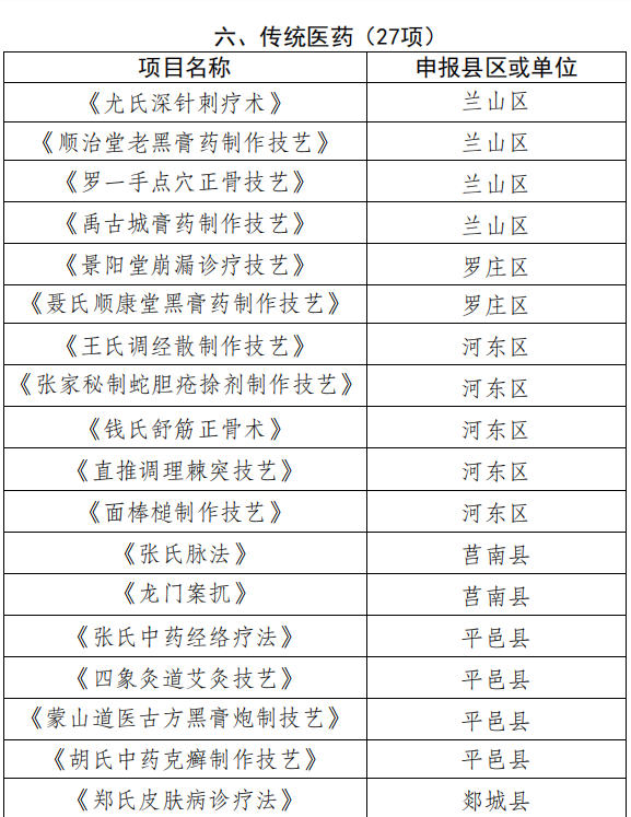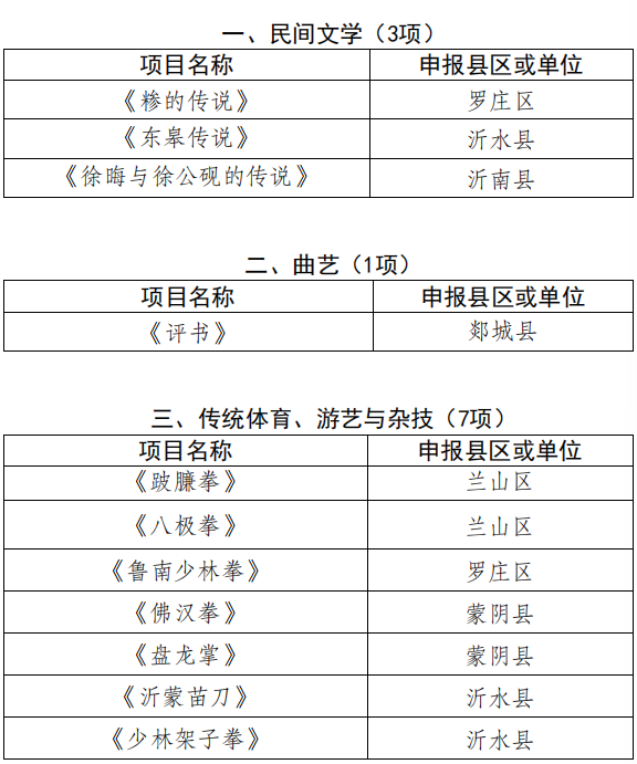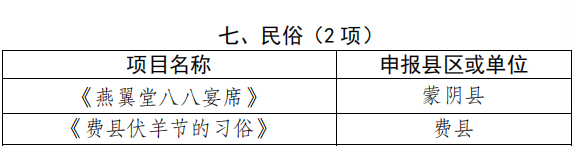 临沂市第七批非物质文化遗产代表性项目名录(共计120项)