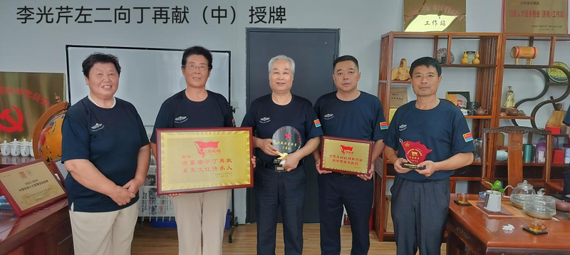 老兵团战士丁再献,是著名文化学者、国家一级书法家、东夷骨刻文破译者、骨刻文书法艺术创始人,至今己经和其兄丁再斌共同破译出900多个骨刻文字,去年,丁再献的家乡为其建立的东夷骨刻文书法艺术馆正式开放。这位古稀老人还不顾腰腿病痛毅然坚持为家乡题书骨刻文书法艺术数百件,让骨刻文书法艺术下乡走进数百户群众家……