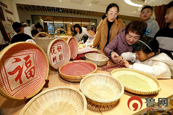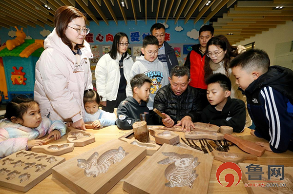 “耳朵这里要稍微弯一下,再轻轻刻一刀就生动多了。”春节前,在龙山街道非遗特色工作室里,非遗传承人王承厚正细心教孩子们篆刻“新年兔子”造型的榼子模具。另一边,十几个孩子争先恐后地让竹编传承人王显波评价自己的“作品”,他们打算用自己做的小竹筐盛放新春糖果。