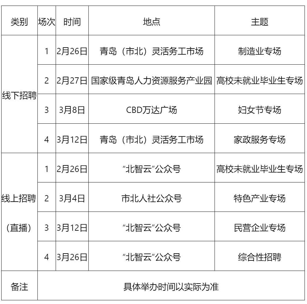市北区2025年“春风行动”暨就业援助月部分招聘活动如下: