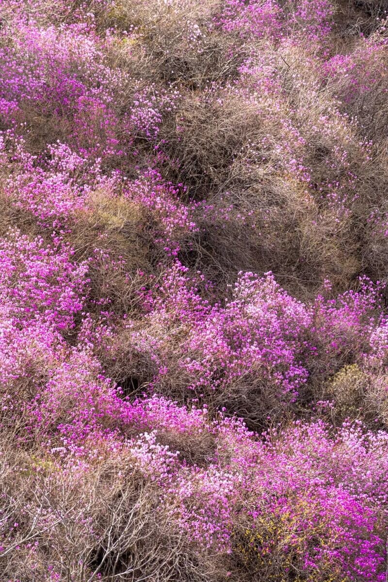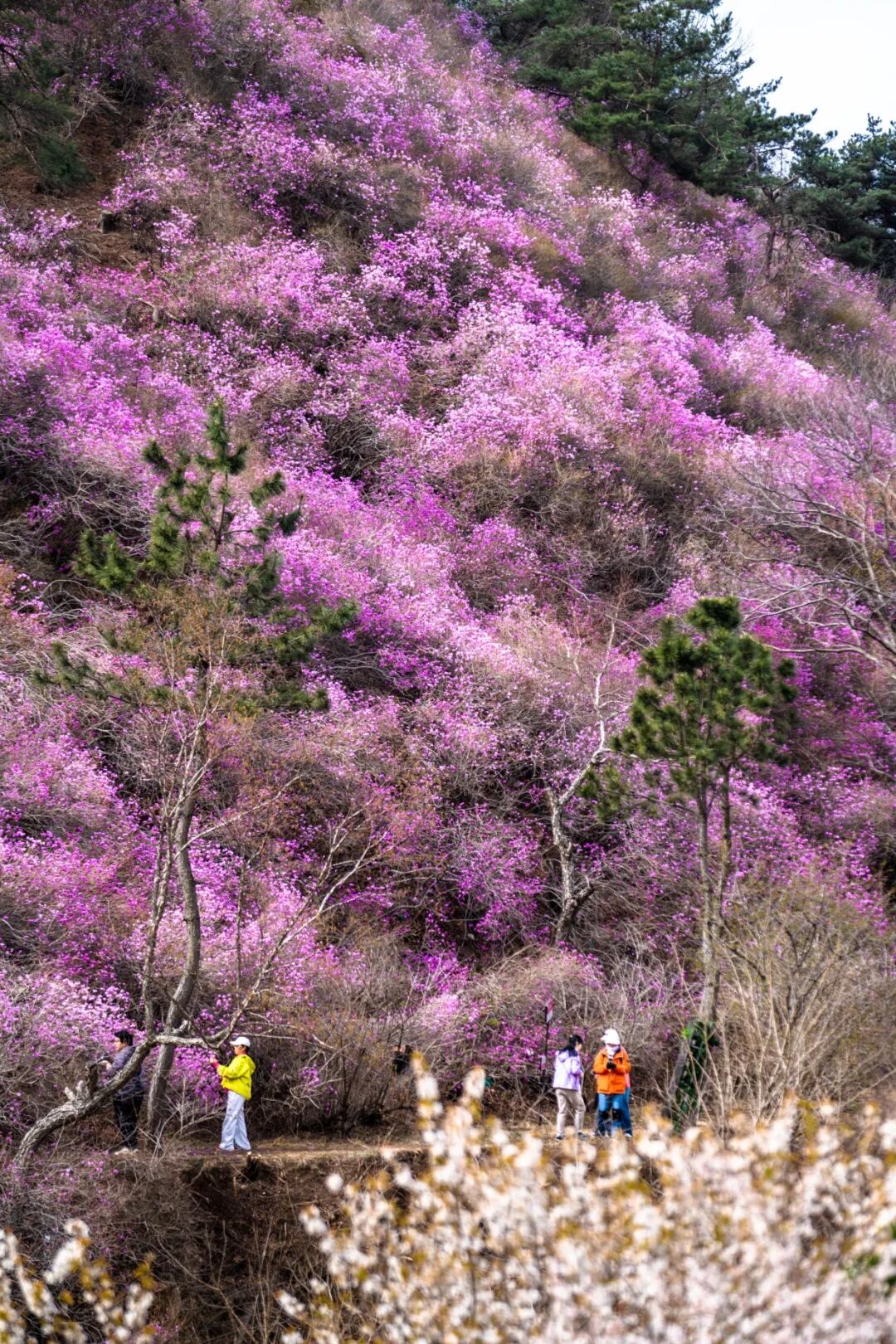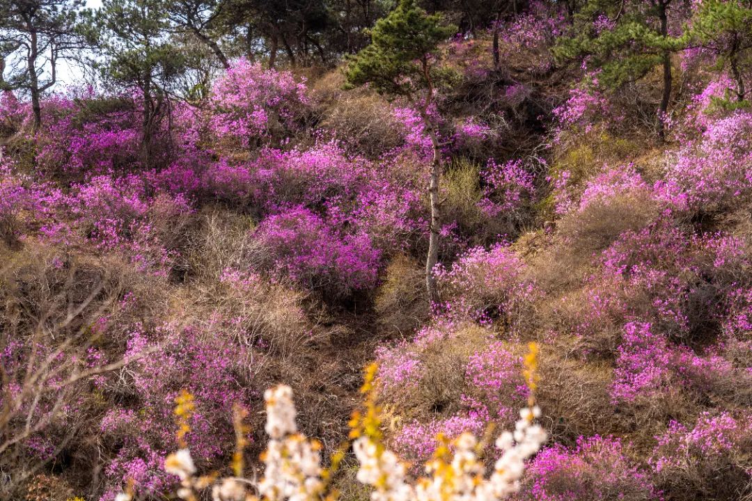 作为“江北最大的野生杜鹃花栖息地”,春天的五莲山和九仙山,万亩杜鹃花海成了绝对的主角。漫山遍野的杜鹃花竞相开放,红得如火,粉的似霞。