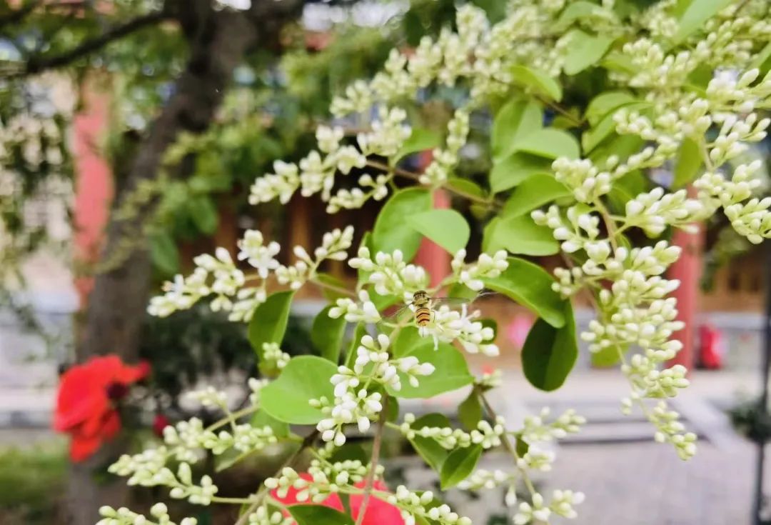 看阳光为花瓣镀上金边,山海间的风裹挟着蜜香轻抚过景区。