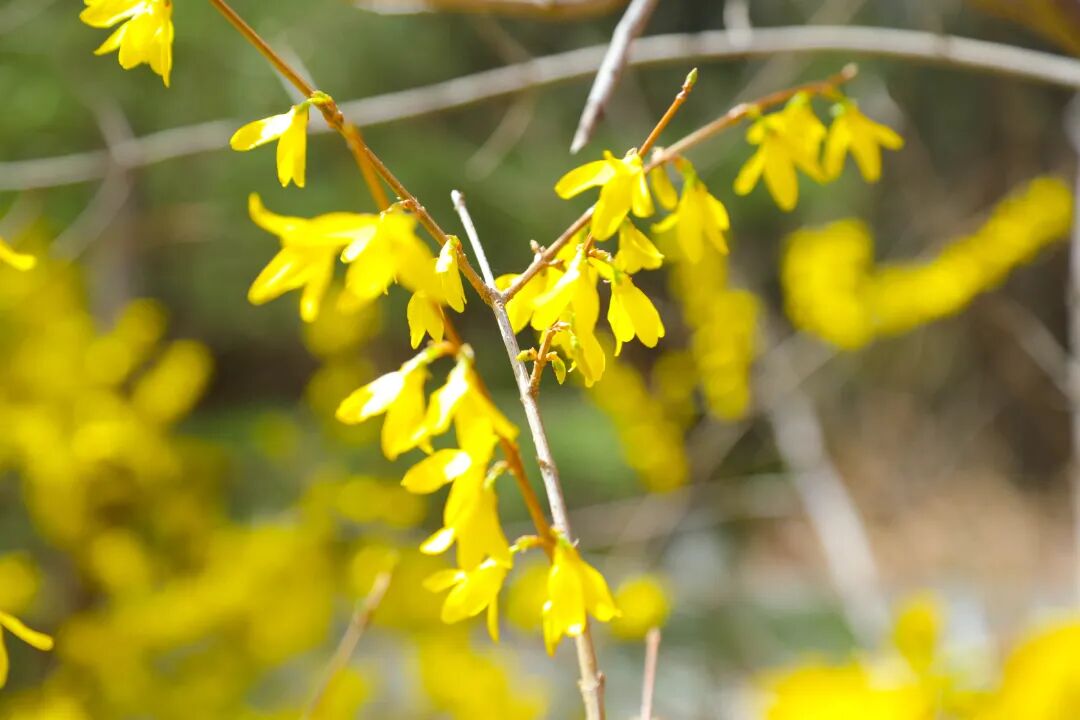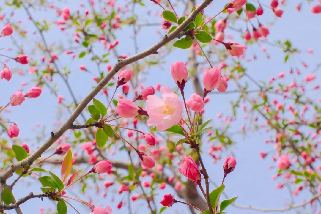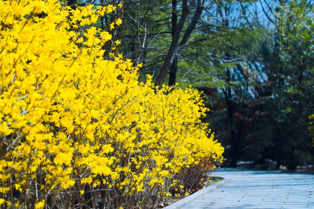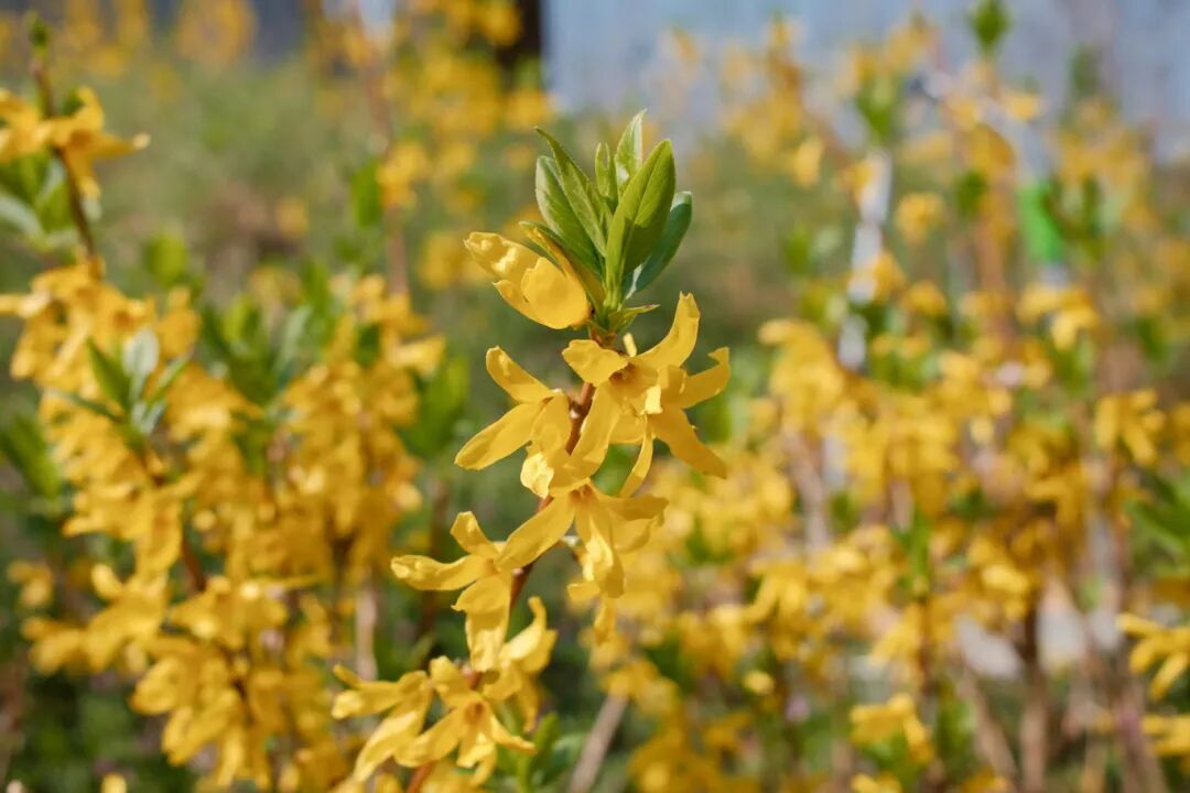 樱花、海棠、连翘等花卉在春风的吹拂下竞相开放,绽放出各自独特的魅力。樱花如云霞般绚烂,海棠似胭脂点染,连翘则金黄耀目。