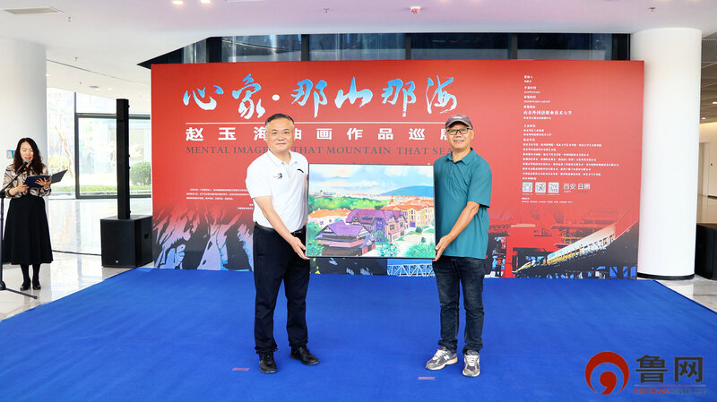 鲁网5月28日讯 (记者 王一凡 通讯员 申平平)5月28日上午,由山东华信工贸集团、山东外国语职业技术大学主办,西北大学艺术学院、艺术研究院、西安华中星辉艺术馆协办,独立策展人、著名当代艺术家刘懋廿策划的《心象・那山那海》赵玉海教授油画作品巡展在山东外国语职业技术大学开幕。