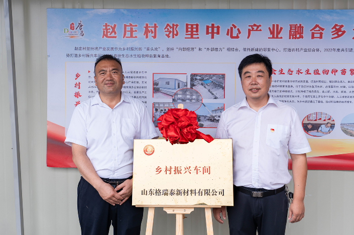 鲁网7月20日讯 火红的绸布从“乡村振兴车间”的牌子上缓缓滑落,鱼台县唐马镇赵庄村第一书记牵头引进的山东格瑞泰新材公司乡村振兴车间正式揭牌运行。
