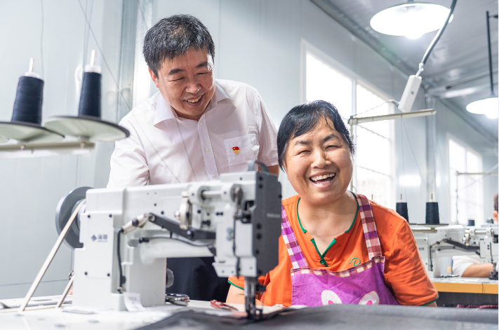 以往,董菊侠也会在附近打工,但工作不稳定不说,一出门就是一天,家里的事完全顾不上。乡村振兴车间的设立,解决了董菊侠的大问题,岗位设在家门口,出门步行几分钟就到,时间更加灵活,家里的事一件也没落下。虽然不能与董菊侠语言交流,但透过她的手势和充满笑容的脸庞,我们能感受到她的喜悦。